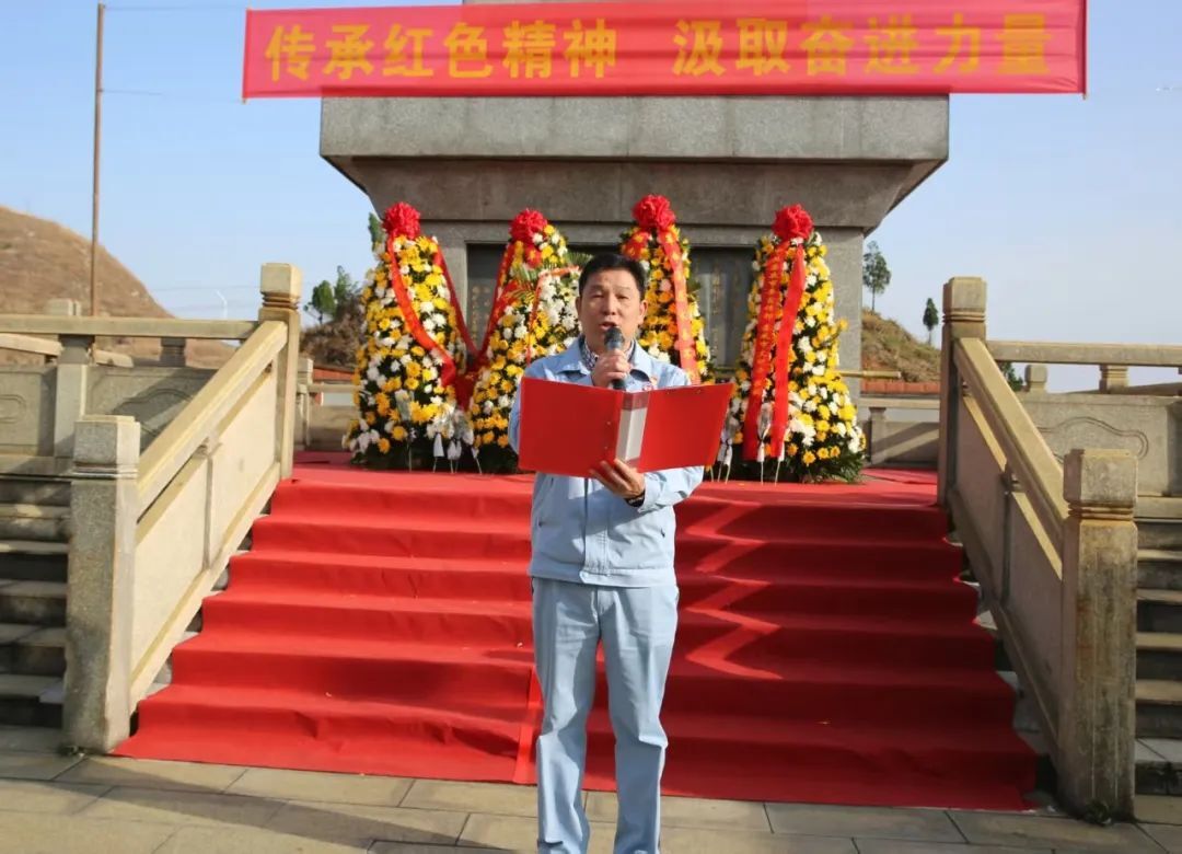????公司總經(jīng)理、黨委副書記李加生將一束白菊輕放在紀(jì)念碑前,“我們要深切緬懷革命先烈的豐功偉績,感恩歷代錫礦山共產(chǎn)黨人的熱血奉獻(xiàn),把錫礦山紅色精神傳承好,轉(zhuǎn)化為永不枯竭的前進(jìn)動(dòng)力?!彼陌l(fā)言擲地有聲。
