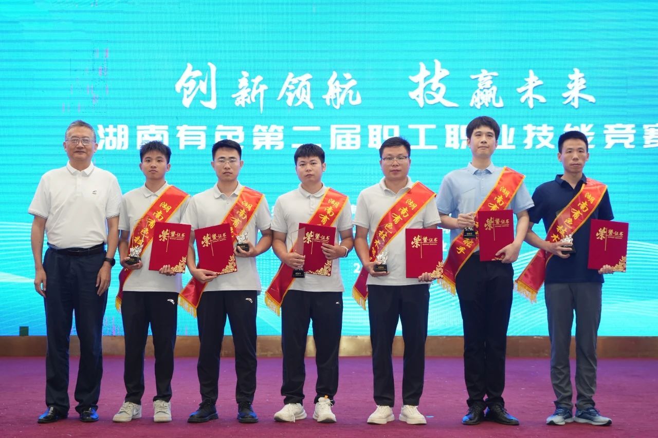 ????與會(huì)領(lǐng)導(dǎo)、嘉賓分別為此次競(jìng)賽獲獎(jiǎng)個(gè)人和集體頒獎(jiǎng)。水口山有色吳禮濤、錫礦山銻業(yè)二隊(duì)(劉強(qiáng)、劉慶忠、段晴明、劉旭輝)分獲工業(yè)智能化、礦山測(cè)量賽項(xiàng)一等獎(jiǎng)并被授予“湖南有色工匠”稱號(hào);水口山有色雷永超、株冶集團(tuán)歐明俊、黃沙坪礦業(yè)一隊(duì)(唐俊、雷宇、謝楊卿、鄧漢)等分獲工業(yè)智能化、礦山測(cè)量賽項(xiàng)二、三等獎(jiǎng);水口山有色王凱、錫礦山銻業(yè)周勇榮獲“優(yōu)秀導(dǎo)師獎(jiǎng)”;錫礦山銻業(yè)榮獲“優(yōu)秀組織獎(jiǎng)”。